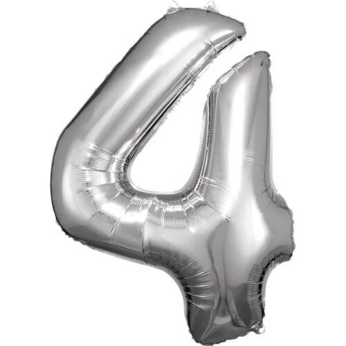 amscan® – Folienballon Große Zahl 4 Silber, 66 x 88 cm