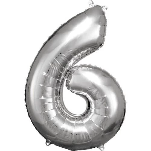 amscan® – Folienballon Große Zahl 6 Silber, 55 x 88 cm